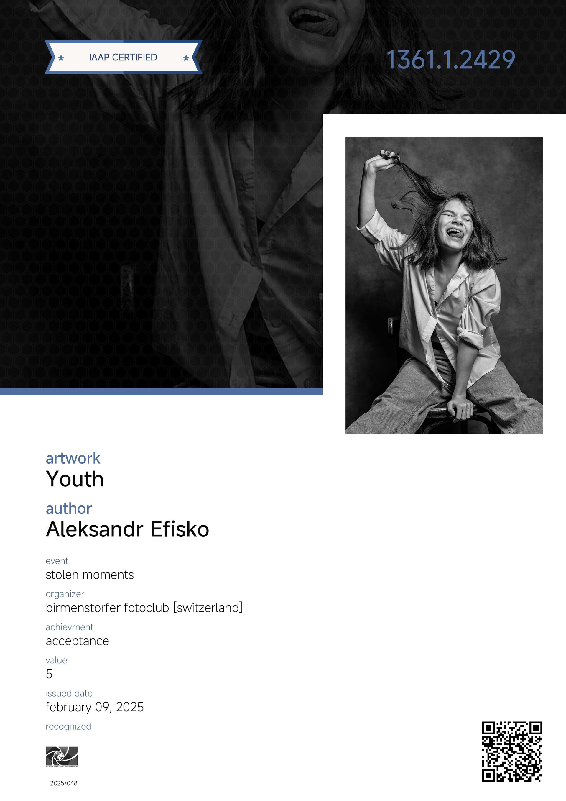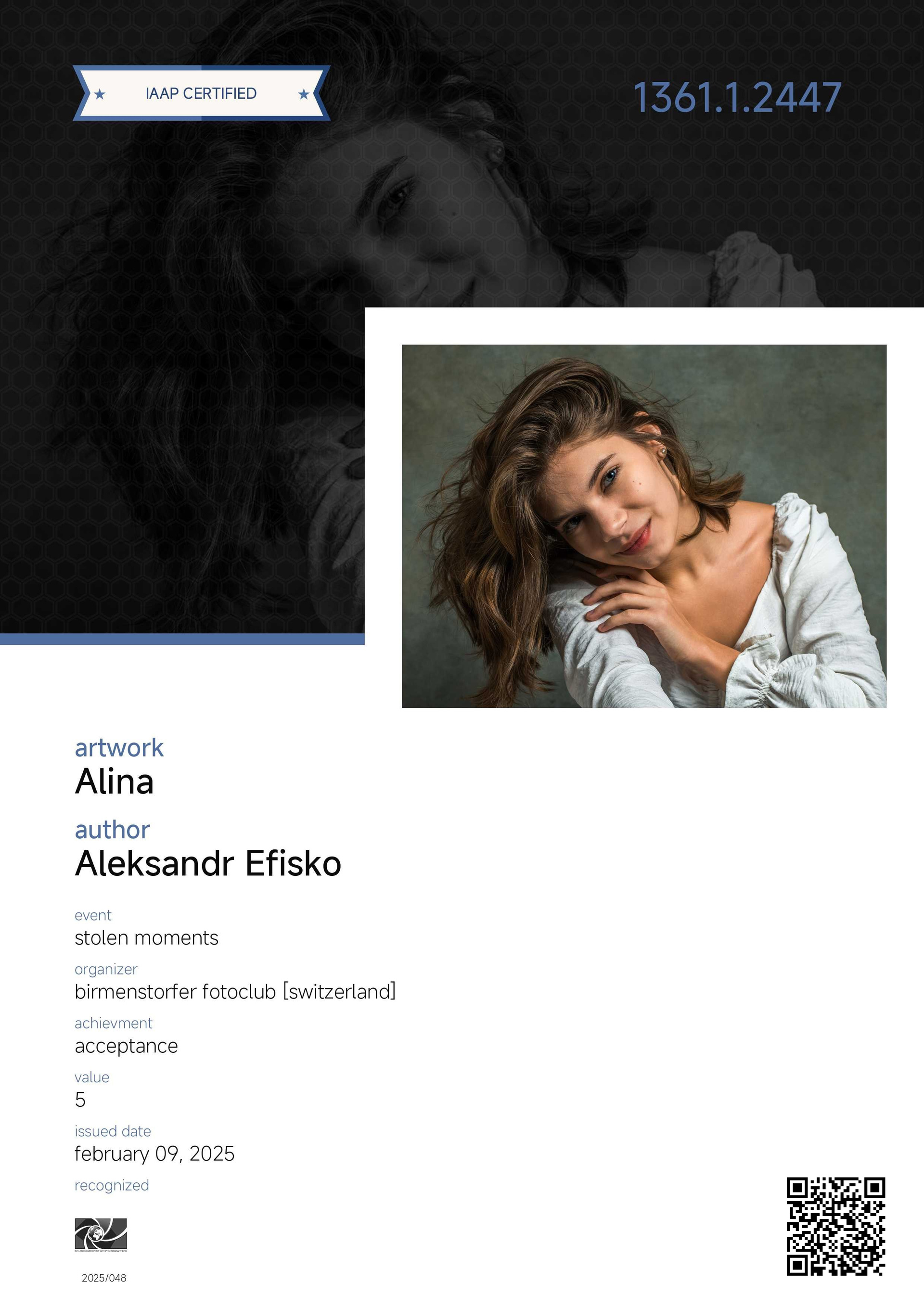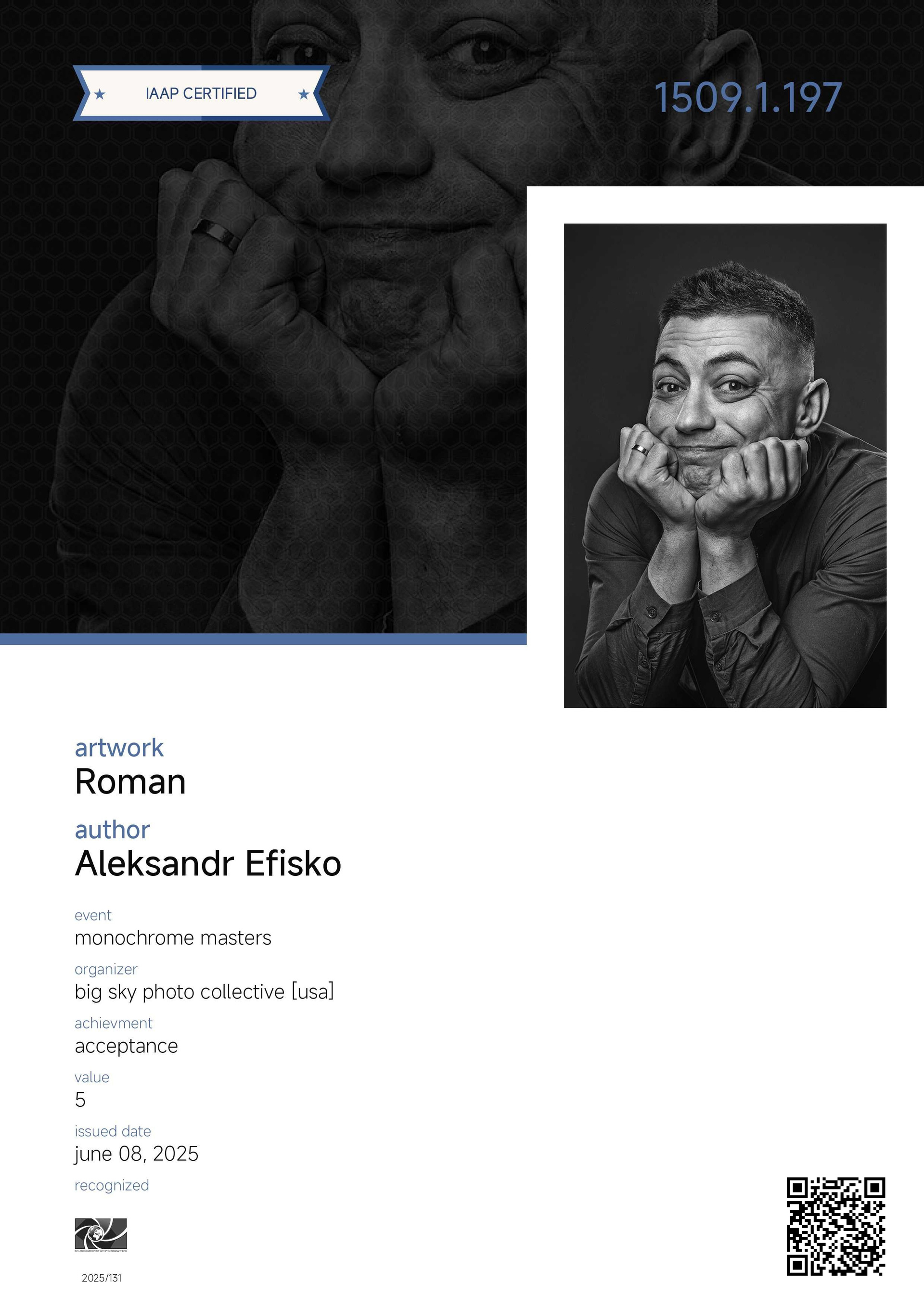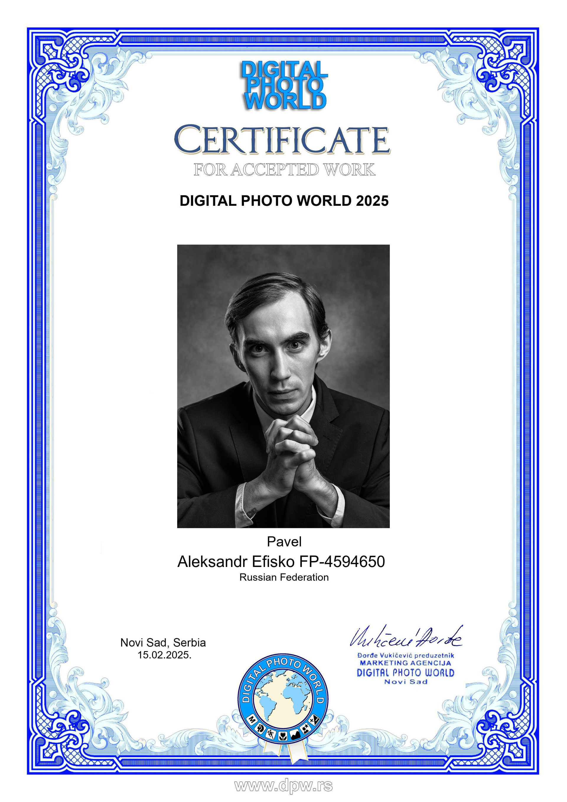 Меня зовут Александр. Я — фотохудожник A IAAP, член Ассоциации фотографов «EURASIA» и Ассоциации фотохудожников «ART PORTRAIT». Для меня фотография — это способ говорить без слов: через свет, тень и тонкие паузы между ними. Я создаю кадры, где важны не только черты лица, но и дыхание момента — то, что остаётся с вами надолго.
